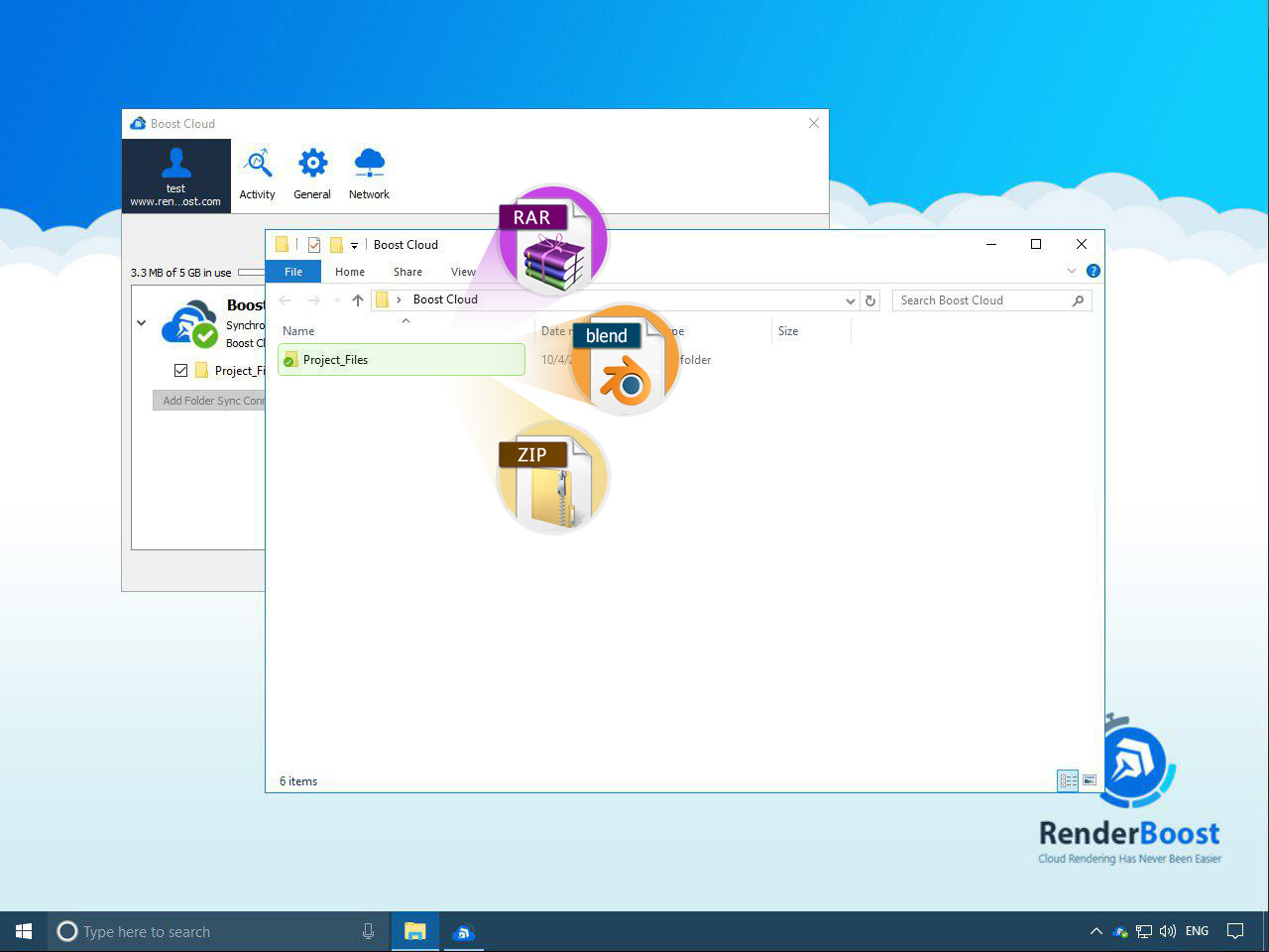 Once you have finished installing Boost Cloud, you will need to log into the app using your log in details. To open Boost Cloud folder, right click on Boost Cloud Icon on system tray and select “Open Folder “ Boost Cloud “”. Within this folder, there will be a sub-folder with the name “Project_Files:” This is where you should put the source files you wish to be rendered. Your files can be archived or native application scenes.